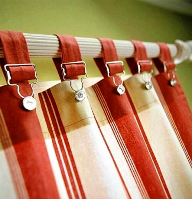 عيوب. عند استخدام حلقات الصم ، لإزالة القماش أو تعليقه ، يجب عليك تفكيك الطنف. إذا كانت قاعدة الطنف خشنة بعض الشيء ، فمن الصعب توزيع الحلقات بالتساوي.