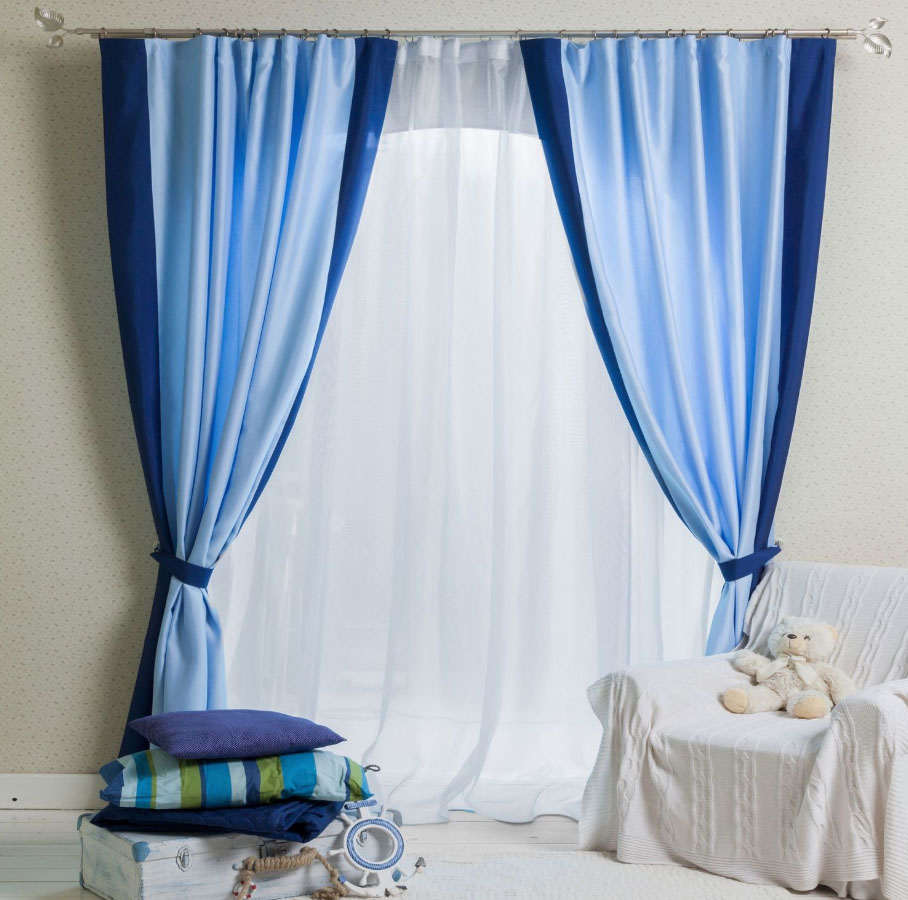 تسترشد بالشعور بالتناسب ، واستخدم نقاط القوة في اللون الذي تم اختياره ، وفكر جيدًا في مزيج من الستائر الزرقاء مع الجزء الداخلي للغرفة واستمتع بالتصميم!