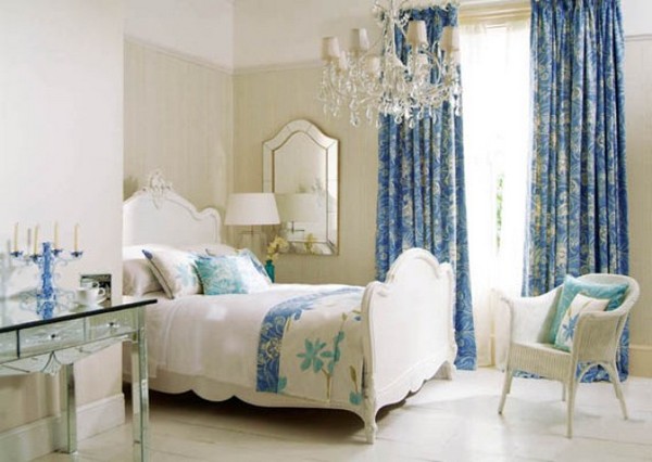 - تبدو مريحة خاصة تول الأزرق في غرفة النوم أو النسيج الخفيف مع طباعة الأزهار الزرقاء.