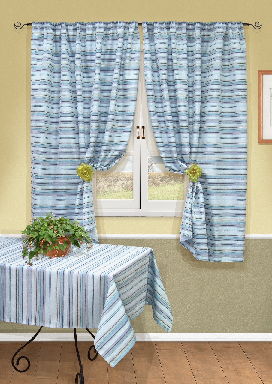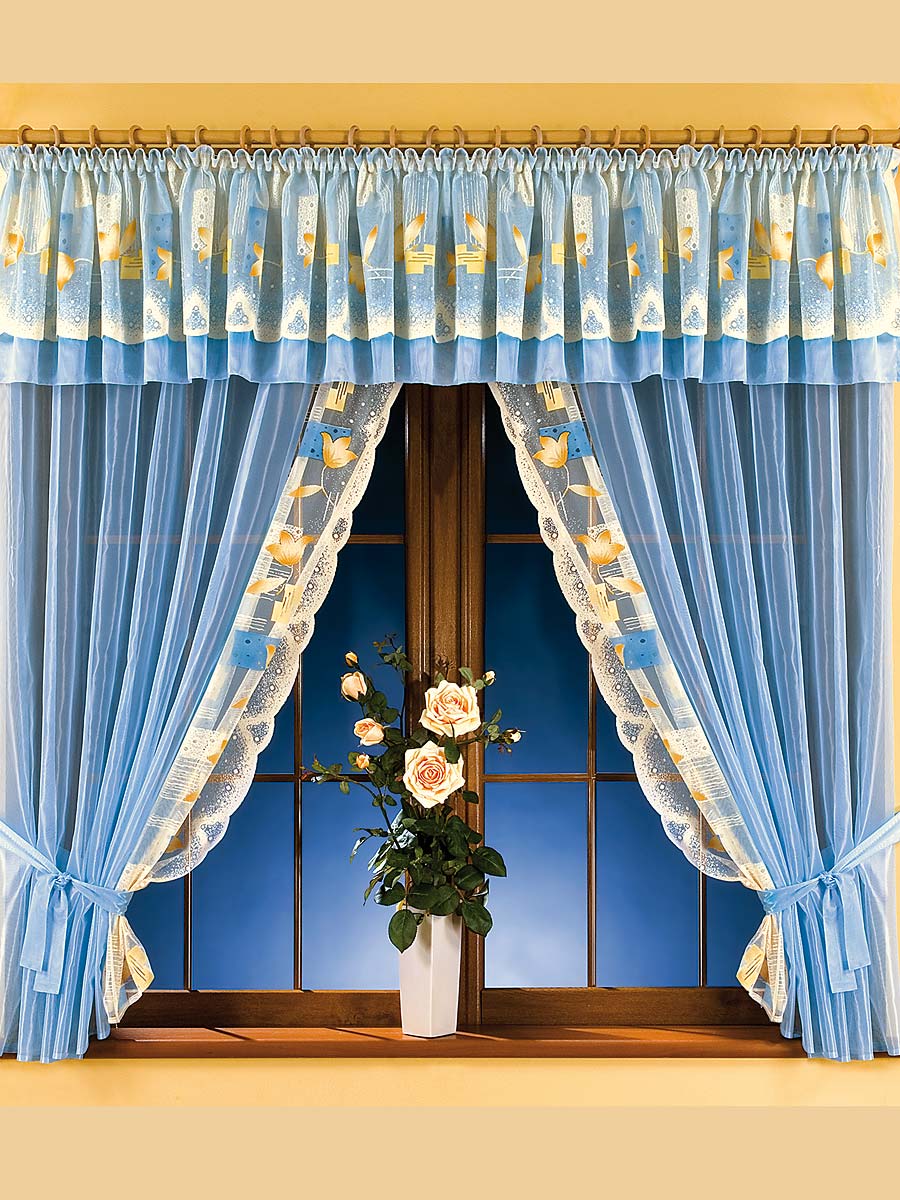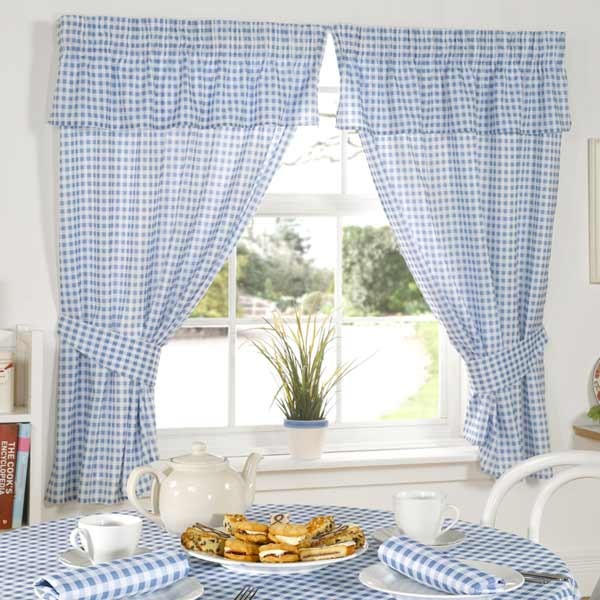 - 3 ستائر زرقاء في المطبخ
