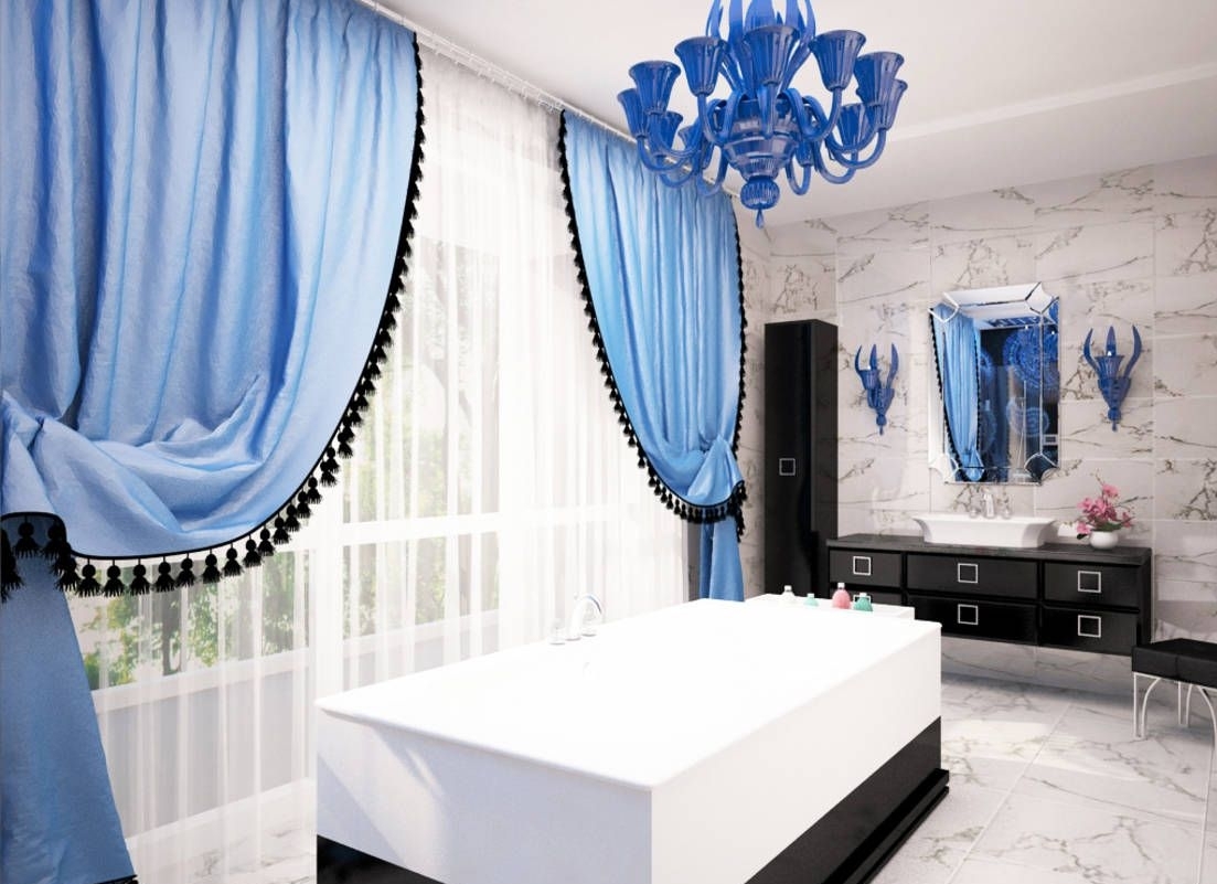 الستائر الزرقاء مناسبة بشكل خاص للغرف المشمسة ، فهي تتميز بمظهر منعش ، لكن في نفس الوقت تبدو لطيفة وأنيقة وأنيقة.