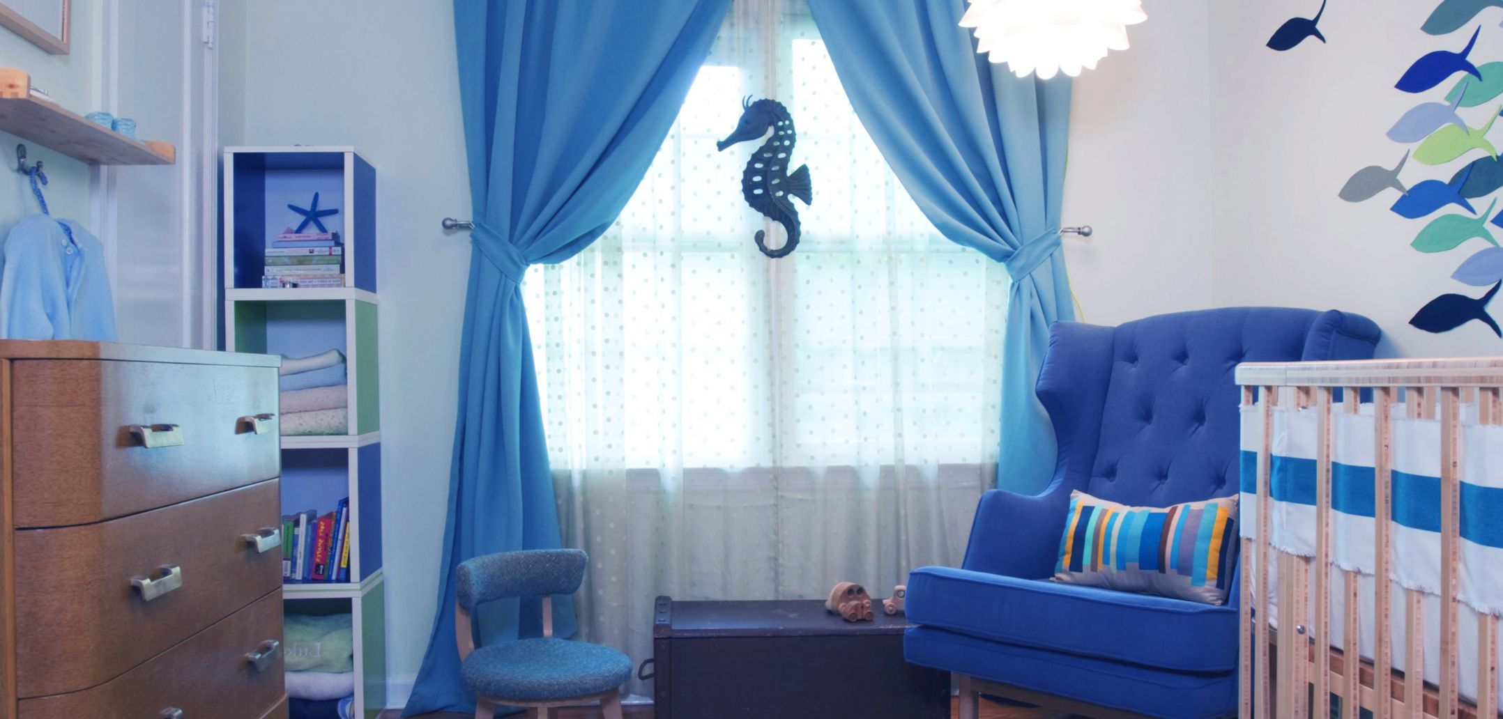 - ستقل غرفة نوم الأطفال ذات الديكور الأزرق من فرط نشاط الطفل.