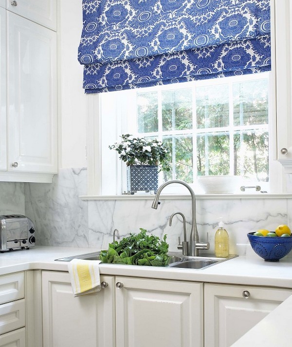 ستائر زرقاء في المطبخ