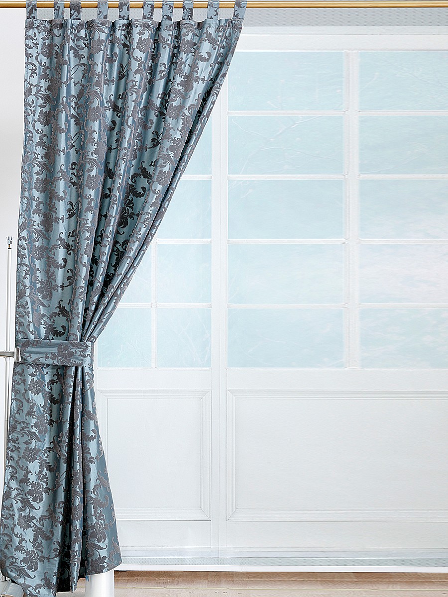 الستائر المجمعة باللون الرمادي والأزرق تبدو لطيفة للغاية في غرفة النوم وغرفة المعيشة