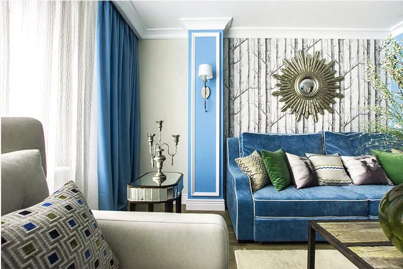 - 1 اللون الأزرق في غرفة المعيشة الداخلية