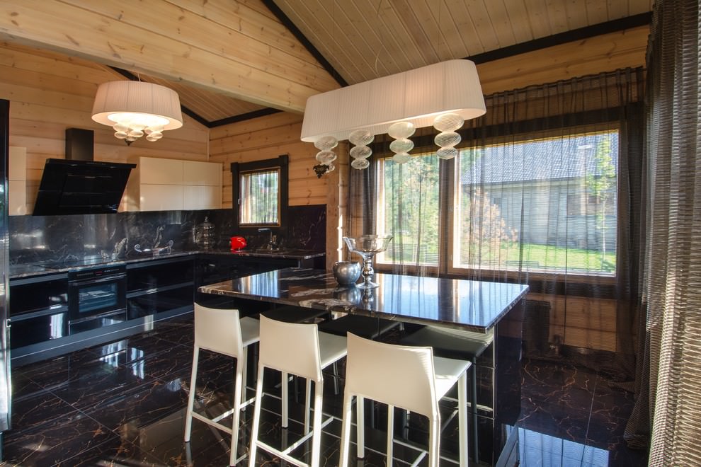 في الجزء الداخلي من المطبخ وغرفة الطعام ، كما هو موضح في الصورة ، سيبدو تول مع الإقحوانات عضويًا.