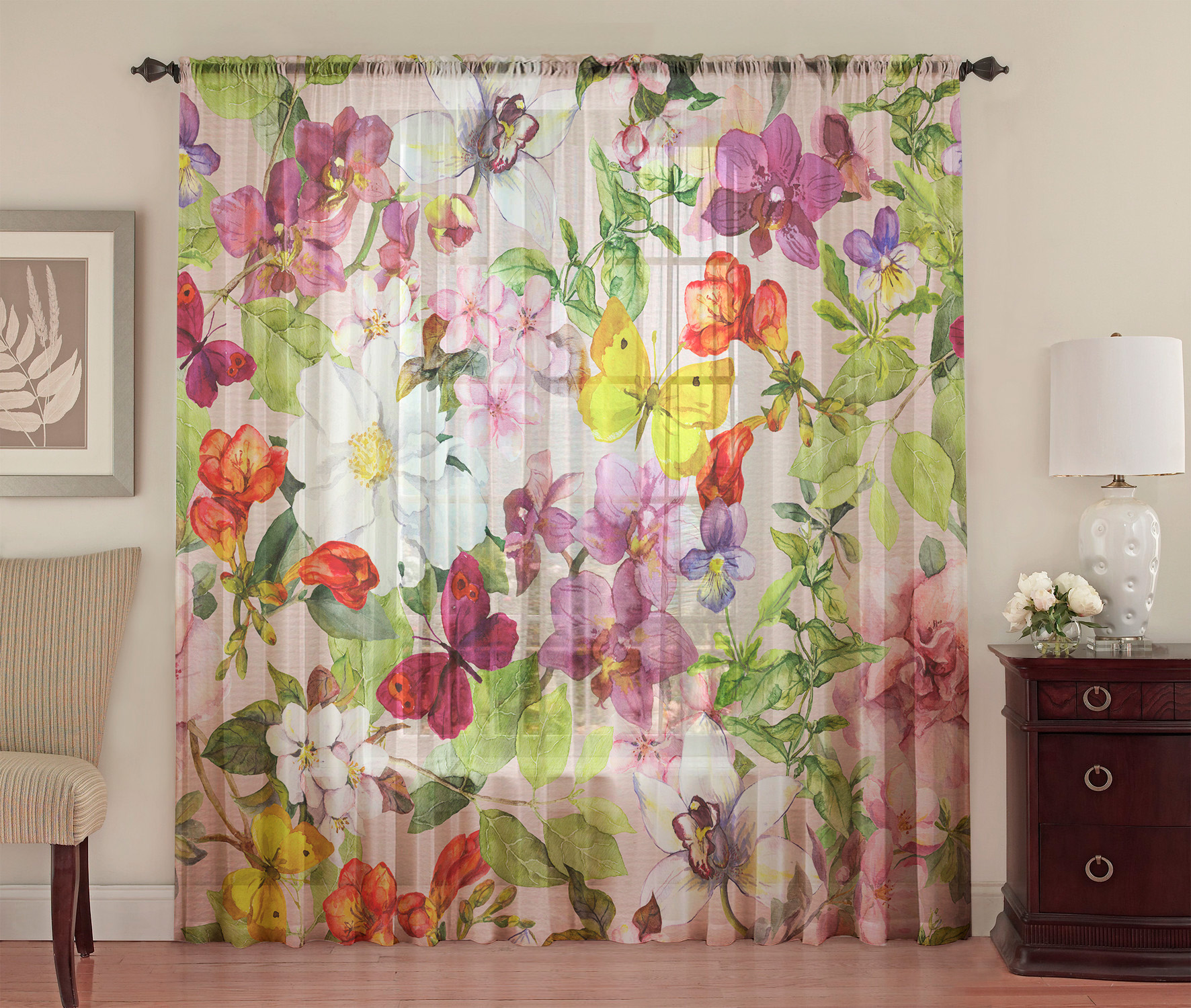 تول نايلون ملون بعناصر نباتية ، مصنوع من غير أورجانزا ، ومناسب لغرف العمل والممرات والمكاتب.