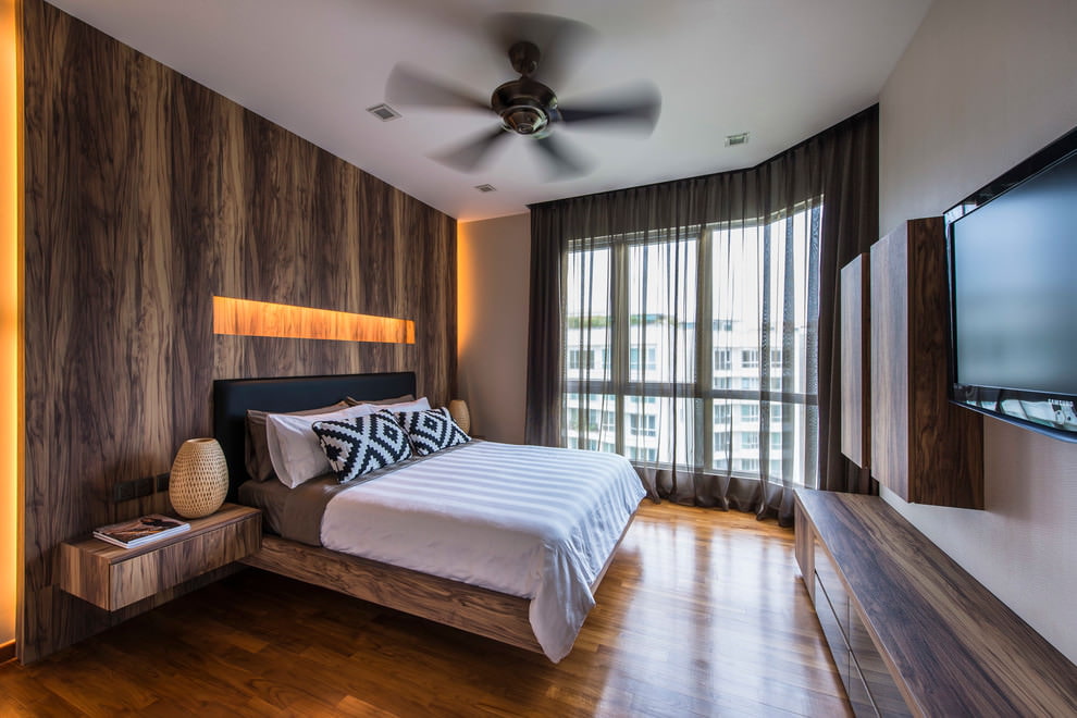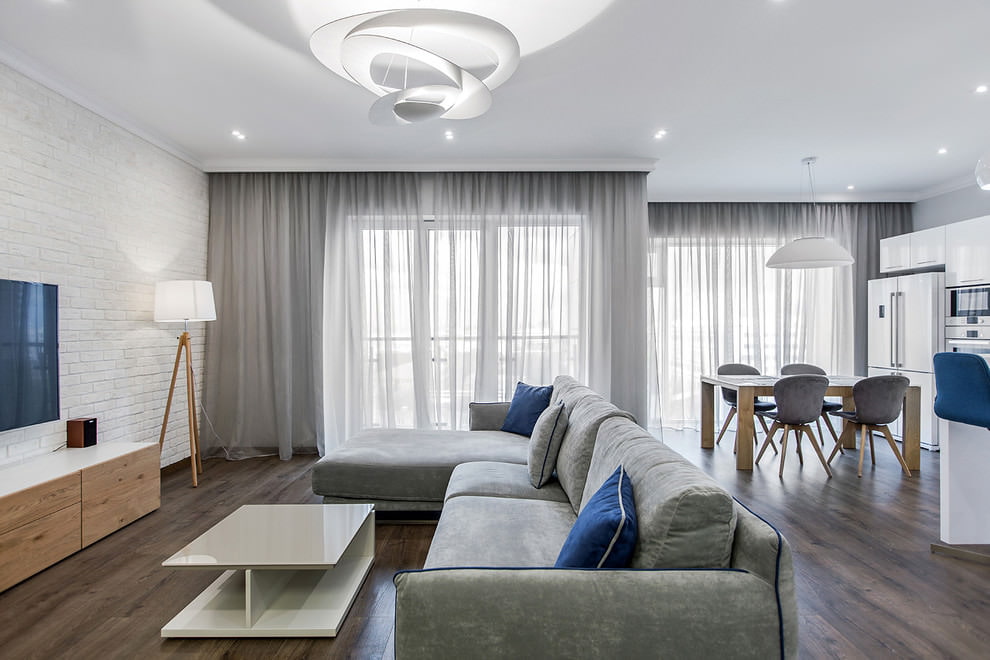الأقمشة واللون والطول تجعل التصميم الداخلي مختلفًا ، على الرغم من حقيقة أن لون الأثاث والجدران يظل كما هو.