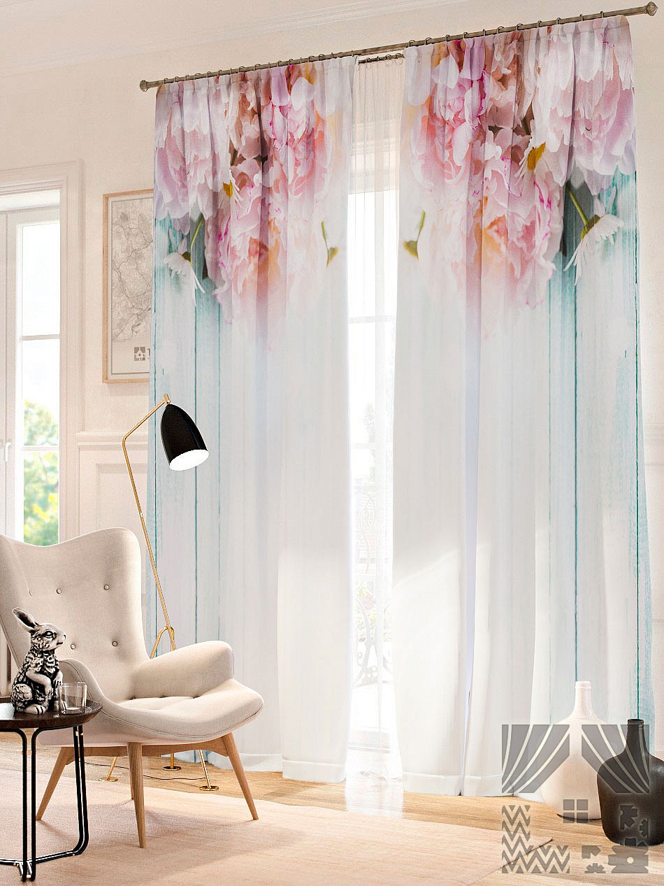- يمكن تزيين النوافذ في الغرف الكبيرة بتول مع نقش كبير. بالنسبة للغرف الصغيرة ، سيكون النمط الصغير أفضل.