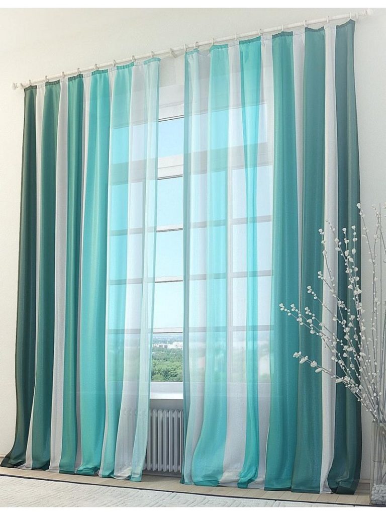 - إذا كان من المفترض أن تضع النوافذ ستائر سميكة ، فيجب دمج لون التول معها. هو الأنسب تول الحجاب أحادي اللون للستائر متعددة الألوان مع أنماط.