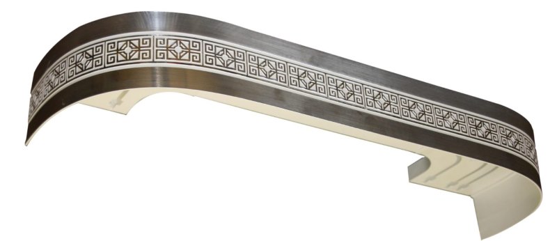 مثال على كورنيش مدمج ، مصنوعة من قضبان مصنوعة من المعدن ، وجبل وخواتم ونصائح مصنوعة من الخشب