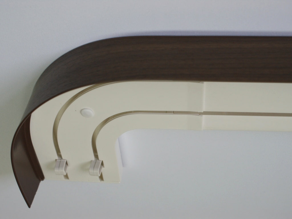كورنيش خشبي مع ستائر تثبيت على الحلقات