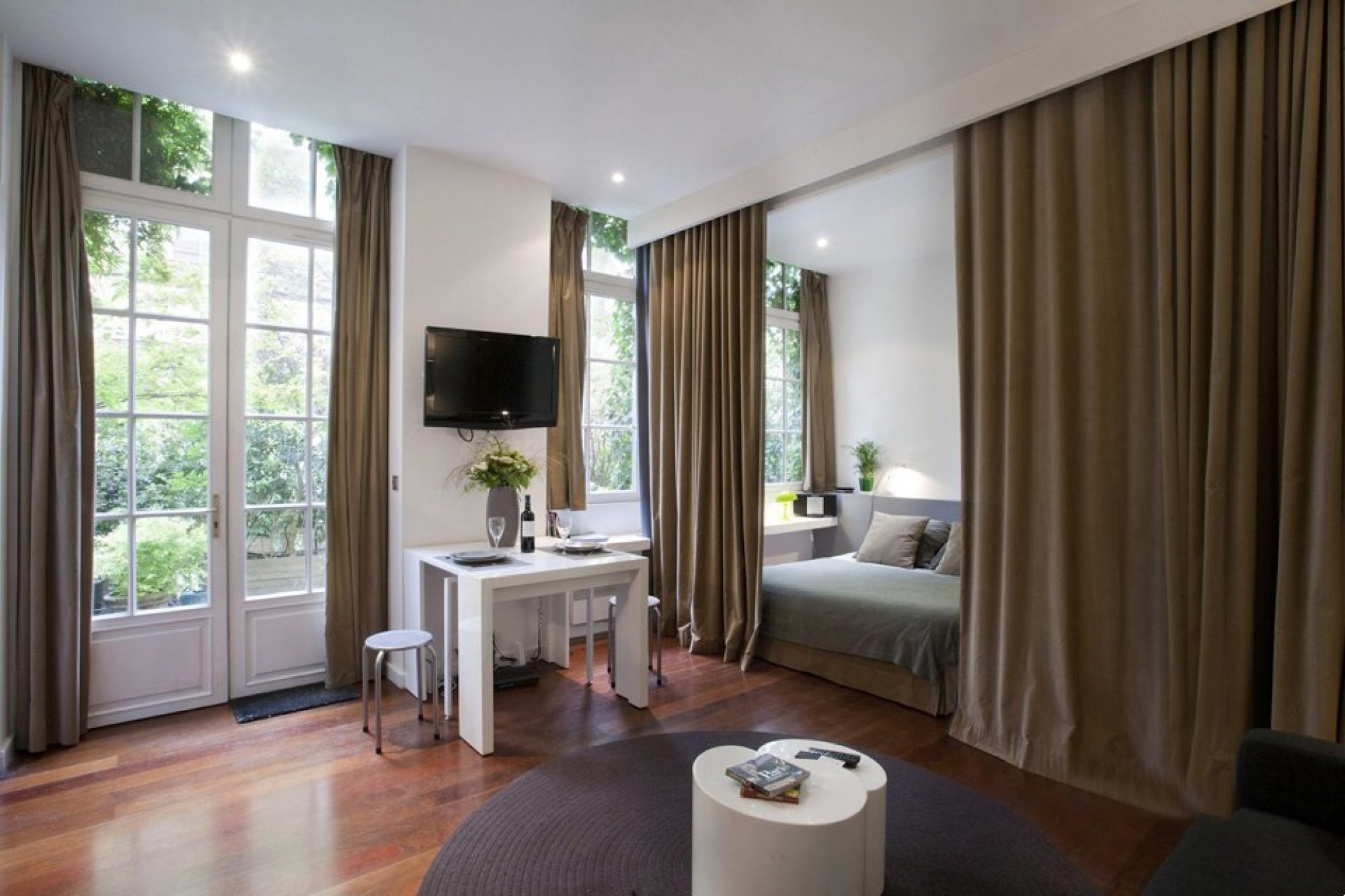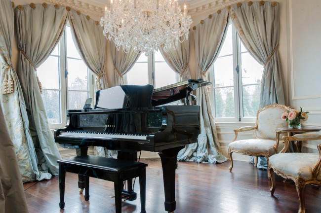 تبدو هذه الستائر باهظة الثمن ، لذلك من الأفضل استخدامها لتزيين نوافذ القاعة.