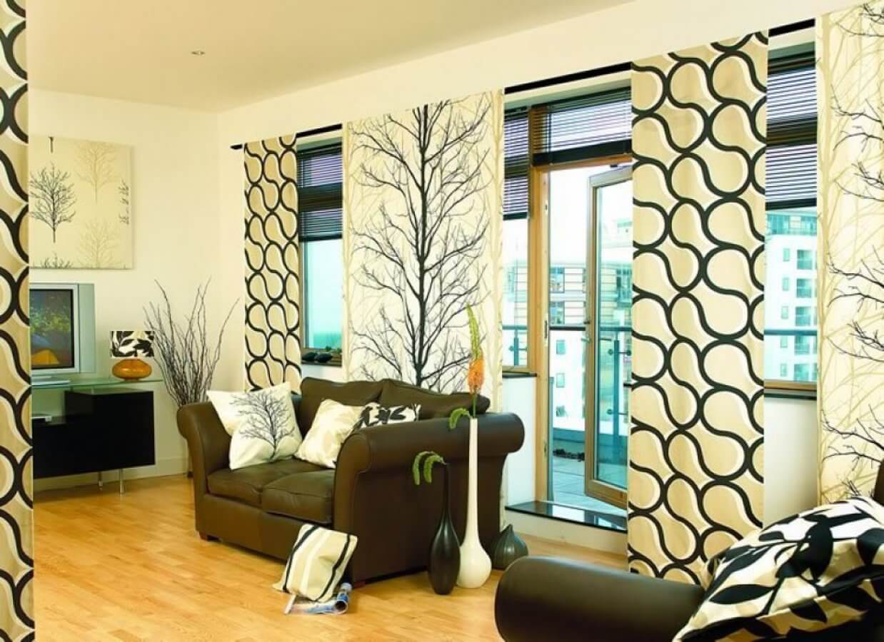 - الستائر القماش. يمكن تطبيقه على أي غرفة: قاعة ، المطبخ ، الحمام ، الدراسة ، الشجرة.