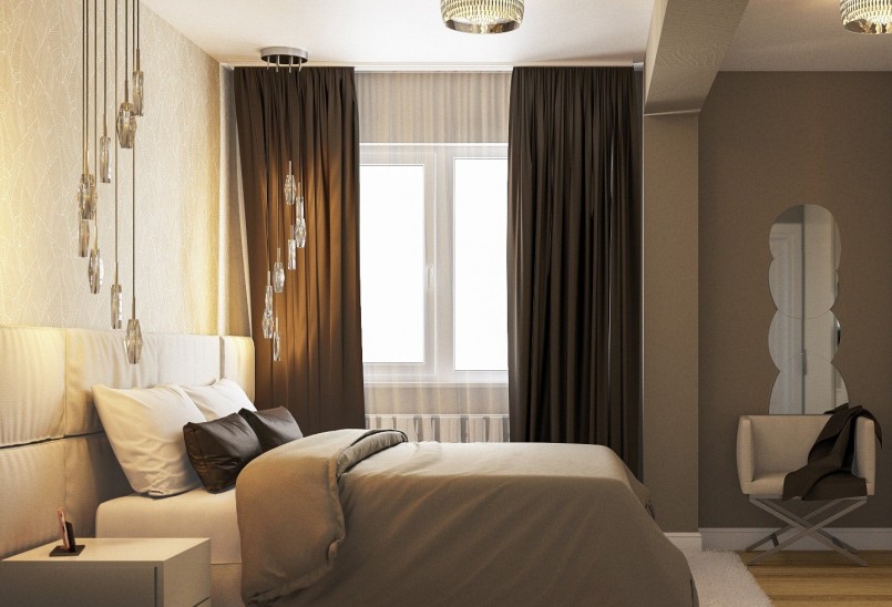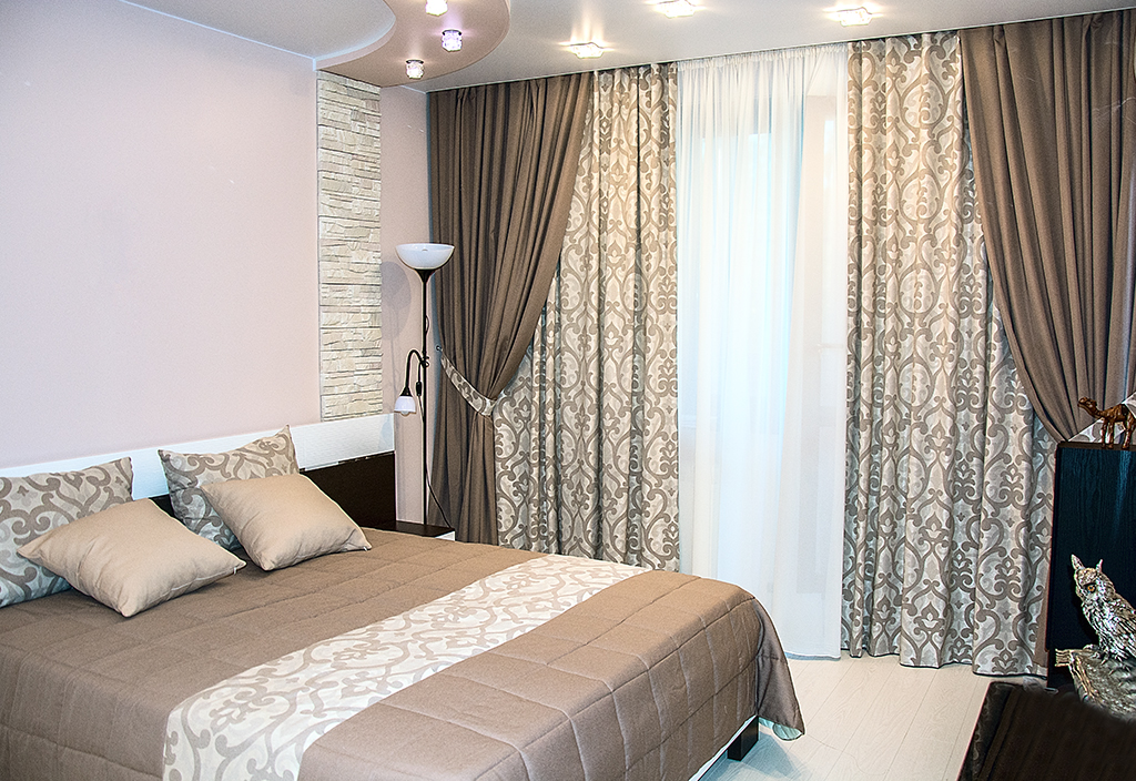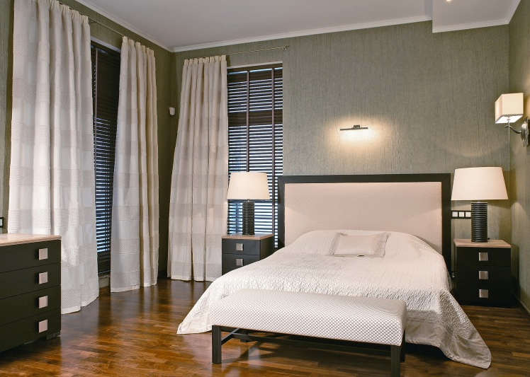 وكقاعدة عامة ، يتم استخدام الستائر السميكة في غرفة النوم ، لأنها لا تسمح بدخول الضوء الساطع.