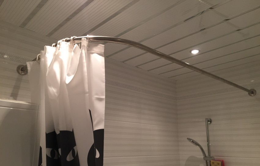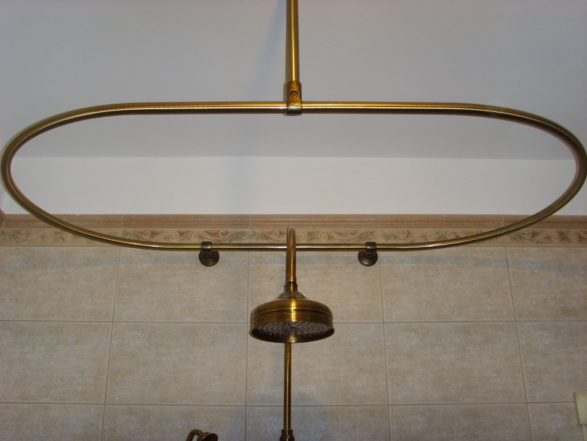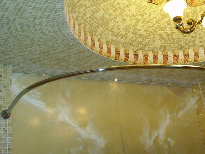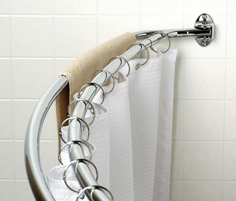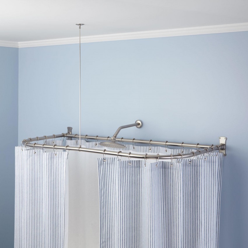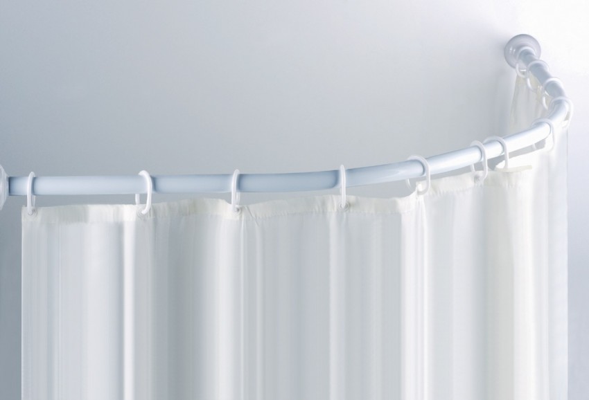 قوس دش شعبية ، وإغلاق مصدر المياه على كلا الجانبين. يمكن إطلاق الكورنيش المنحني من الفولاذ المطلي بالكروم والنحاس والبلاستيك والبرونز. علاوة على ذلك ، يتم استخدام الـ PVC بشكل أقل تواتراً ، لأن احتمال هبوط الهيكل يكون مرتفعًا للغاية ، خاصة عند استخدام الستائر الثقيلة. إذا تم استخدامها ، فأنت بحاجة إلى اختيار الخيار ليس مسطحًا ، بل هو الأنبوب ، نظرًا لوجود إمكانية كبيرة لتكسير المادة قيد التحميل.