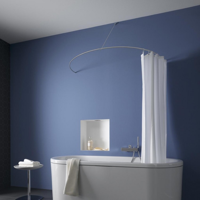 يمكن للقضيب ، المصمم للستارة الموجودة في الحمام ، إغلاق جانب أو جانبين من حوض الاستحمام أو وضعه حول المحيط. يعتمد ذلك على موقع الكائن - سواء كان مفصولًا عن الحائط أم لا.