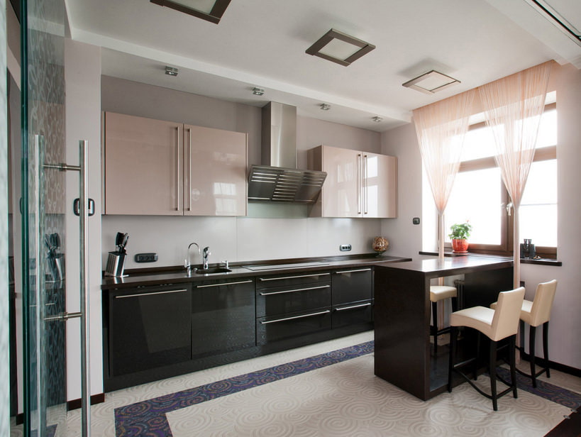 مثال على هذا التسقيف يمكن رؤيته في الصورة. يمكن أن يتداخل النمط المتناقض مع الخلفية الرئيسية للقماش بشكل متناغم مع ورق الحائط والستائر. يتم عرض طريقة مثل هذا الجمع في الصورة.