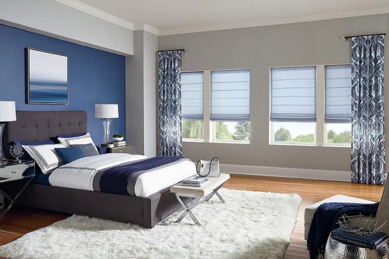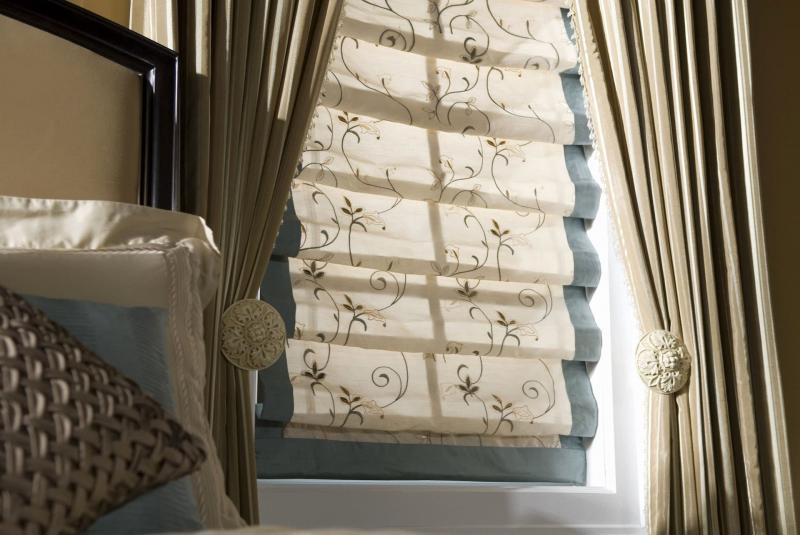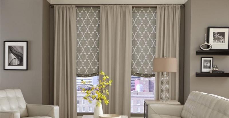 تبدو الستائر المصنوعة من القماش الروماني جيدة في غرفة النوم وغرفة المعيشة ، مع ستائر من نفس القماش
