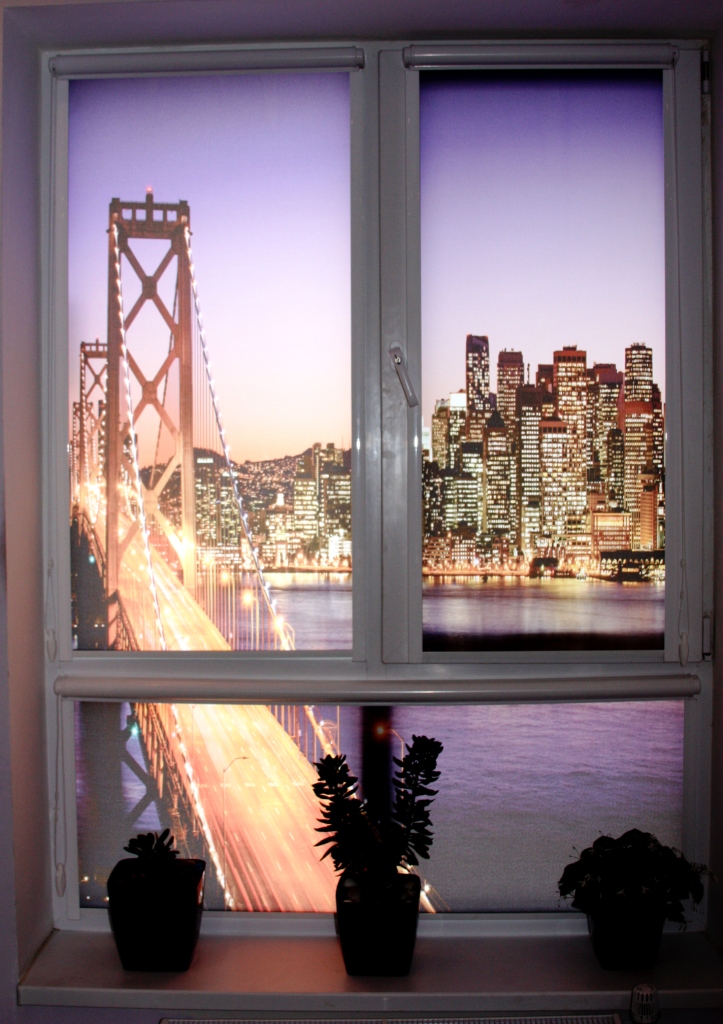 المناظر البحرية ، والمدينة الليلية ، والصور مع الزهور أو الطيور ، والصور المفضلة - يمكنك اختيار أي شيء لطباعة الصور على الستائر الدوارة