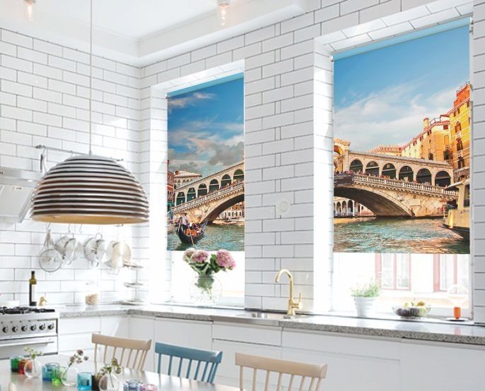 من الممكن تثبيت الستائر الدوارة مع طباعة الصور الفوتوغرافية في أي مكان من الأغراض: في الحمامات ، غرف النوم ، الأطفال ، المقاصف ، الصالونات ، المتاجر ، المكاتب.