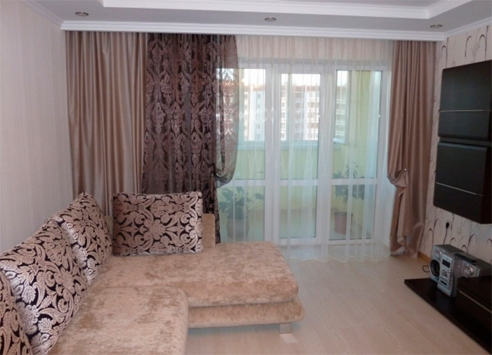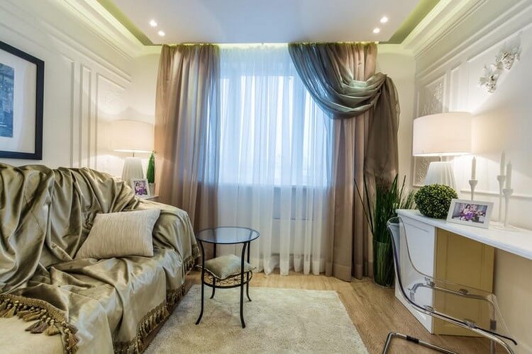 الأمثلة الأكثر إثارة للاهتمام من تصميم الستار لغرفة المعيشة ، الصورة