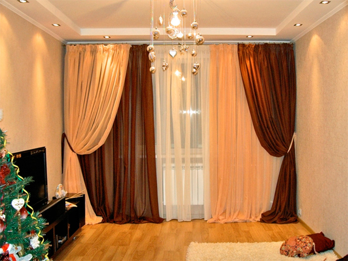 الستائر والستائر في غرفة المعيشة: خيارات وأمثلة وصور