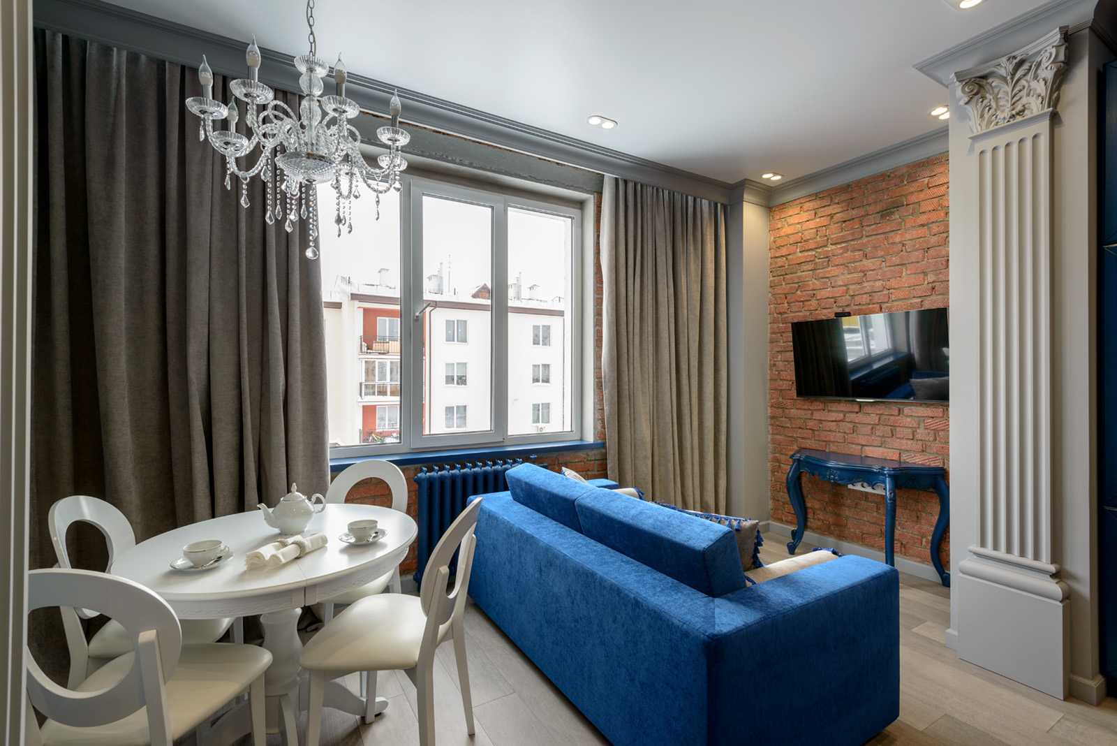 - أولاً ، يجب أن تكون الغرفة كبيرة الحجم وذات سقوف عالية ، فمن الأفضل أن تحتوي الغرفة على هياكل إضافية: الأقواس أو الأعمدة أو المنصة.
