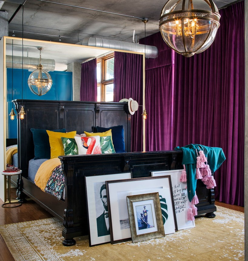 الستائر المخملية ذات النعومة تخلق جواً رومانسياً في غرفة النوم