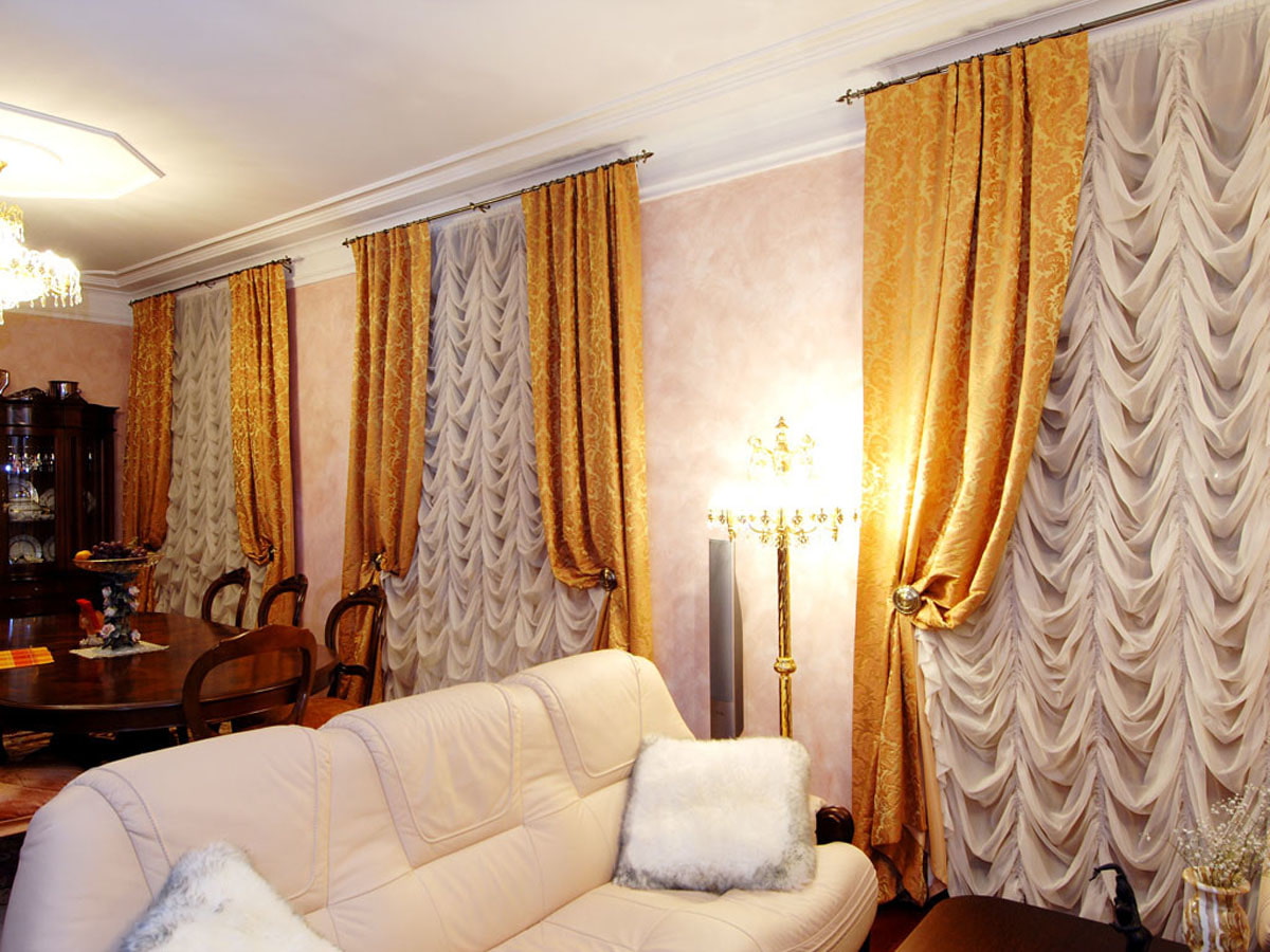 اعتمادًا على الوظيفة ، يتم تزيين الستائر في غرف مختلفة بشكل مختلف.