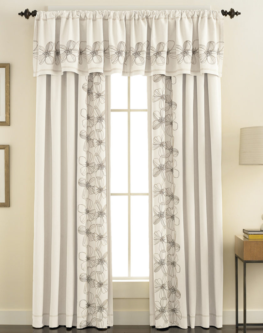 - ستائر Svagi ذات شكل معقد. الأنواع الزخرفية مع اثنين من الحواف المعلقة.