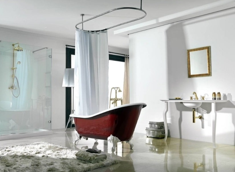 - قضيب ، الشرائح جولة. تتكون من شريط الجولة. إدراجها في قوس ثابت في الجدار. في النهاية هناك محطات مستديرة على كلا الجانبين.