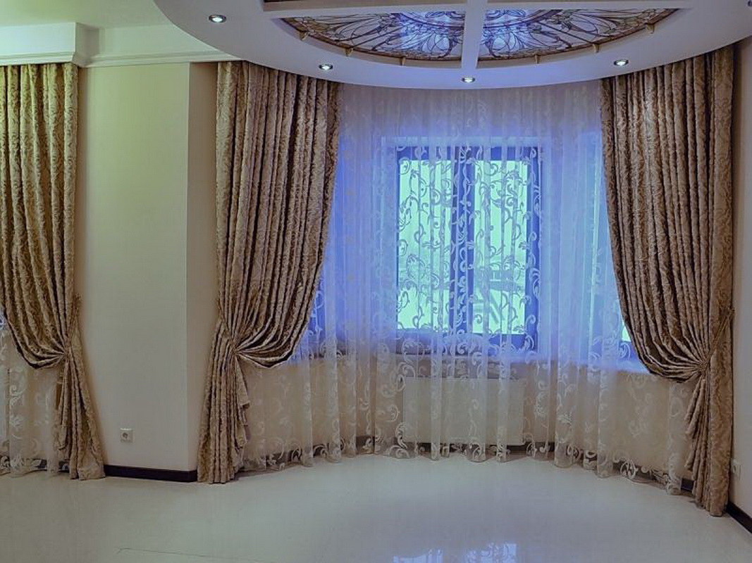 تحتاج إلى شراء تول حسب الطول من السقف إلى الأرض ، إذا كنت مهتمًا بخيار مقص الستارة. بقية النموذج للنشر على أساس الميزات.
