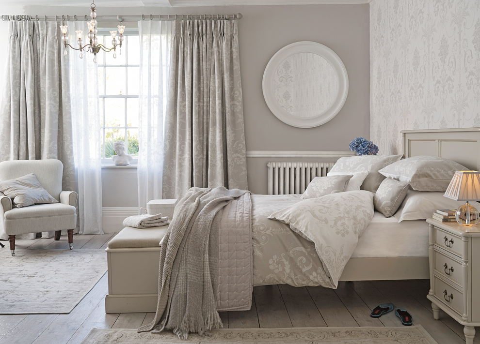 يجب أن تكون الستائر والكورنيش متناسقة مع بعضها البعض وأن تمتثل للأسلوب العام للغرفة.