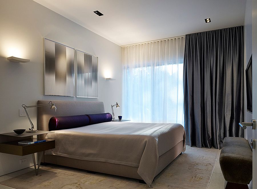 كورنيش سقف مخفي مع ستائر مستقيمة ثقيلة