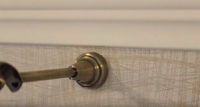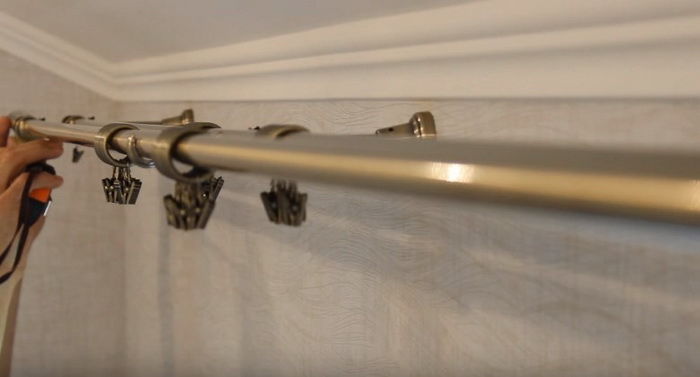تحذير! من الضروري الحفاظ على مسافة 10-15 سم بين السقف والجدار. خلاف ذلك ، تبدو قضبان الستائر محرجة.