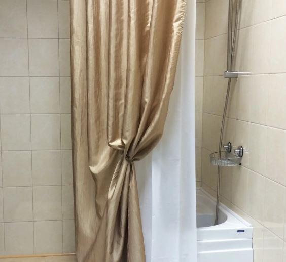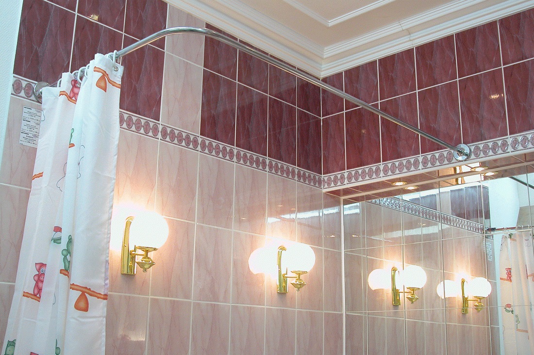 انتبه! لا تنسى: إذا كنا نتحدث عن حمام مشترك ، فيجب أن تكون الستارة كثيفة ومبهمة قدر الإمكان.