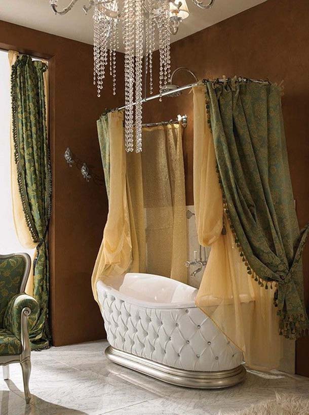 يجب أن يكون الحمام هو المكان الذي يشعر فيه السكان بالراحة والراحة ، وستائر النسيج تساعد: