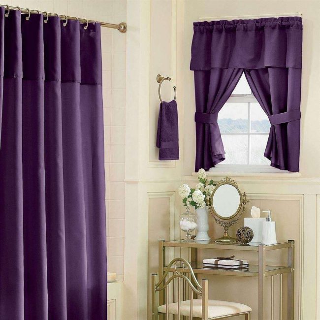 في غرفة الاستحمام ، حيث توجد نافذة ، يمكنك شراء ستائر أحادية اللون أو ملونة بزخارف قاتمة وغير واضحة ، خاصة إذا كانت الغرفة تواجه الجانب المشمس ، حيث تبقى الشمس طوال اليوم.