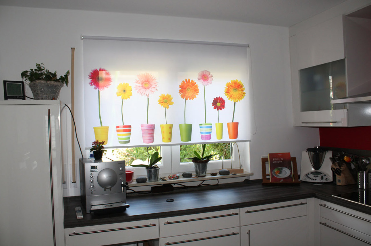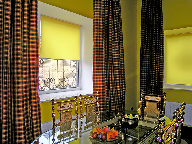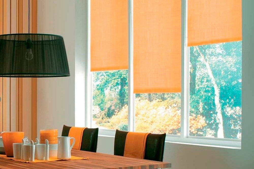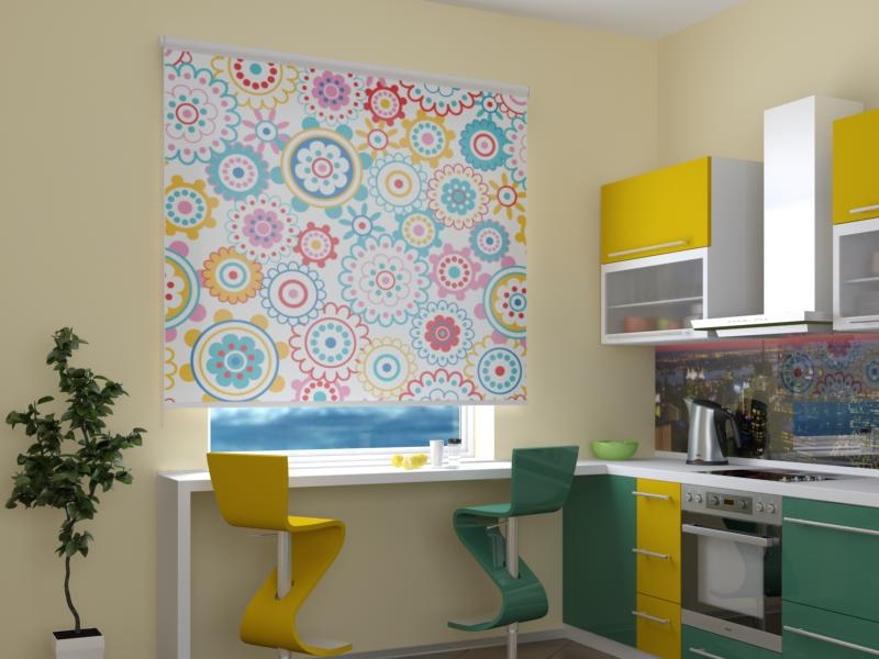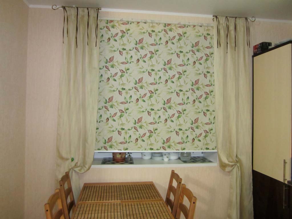 للمباني السكنية ، اختر الستائر ذات الألوان الطبيعية من المنسوجات غير السامة. في المنزل - منطقة تناول الطعام - المواد الاصطناعية أو المركبة المفضلة التي لا تمتص الزيوت والروائح الكريهة. من الأفضل أن يكون لديهم نوع من الصور أو الطباعة - زهور ، أشكال هندسية.