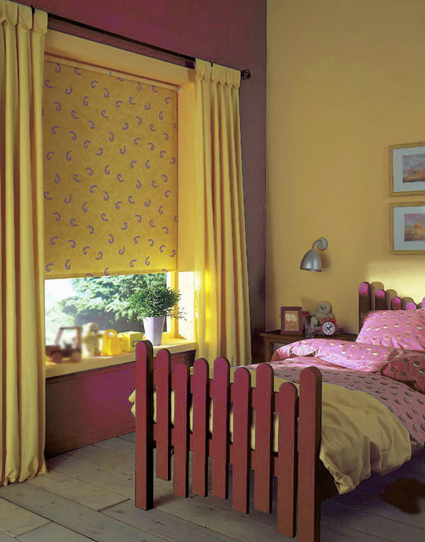 الغرف الموصى بها - غرفة نوم ، حضانة ، غرفة معيشة. مادة تكسير الكتان ، لذلك من الأفضل اختيار قطعة قماش بخيط الكتان ، بدلاً من إخراجها تمامًا.