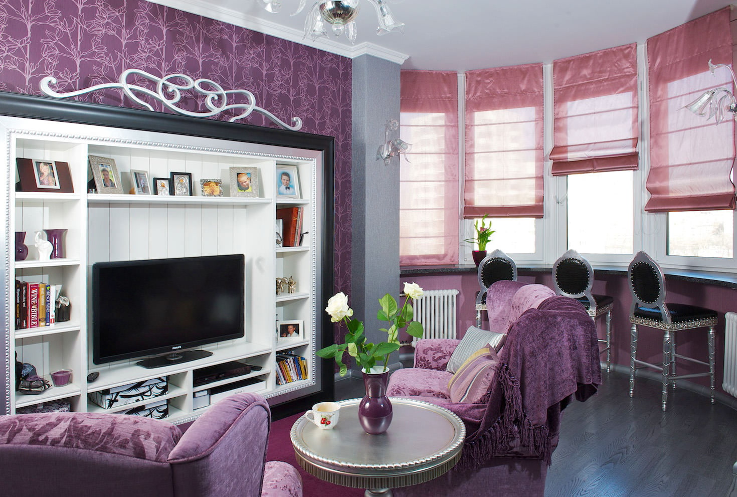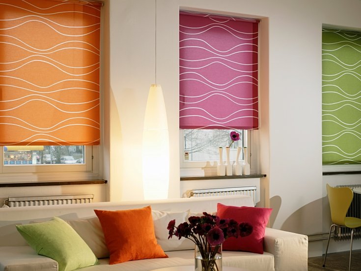 - الرومانية. تحتوي الستائر على آلية يرتفع بها النسيج ويتدحرج على كورنيش. تم تجهيز التصميم بشكل إضافي بسكة خشبية أو بلاستيكية.