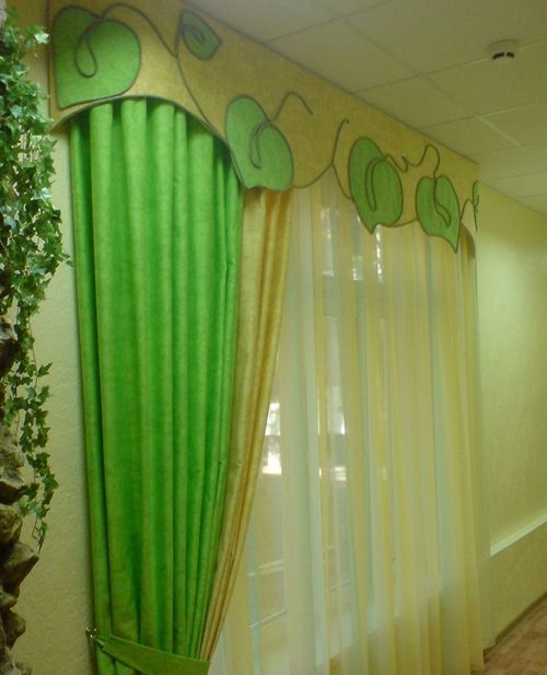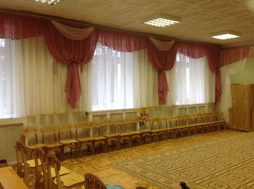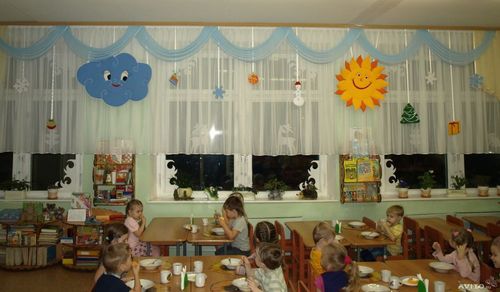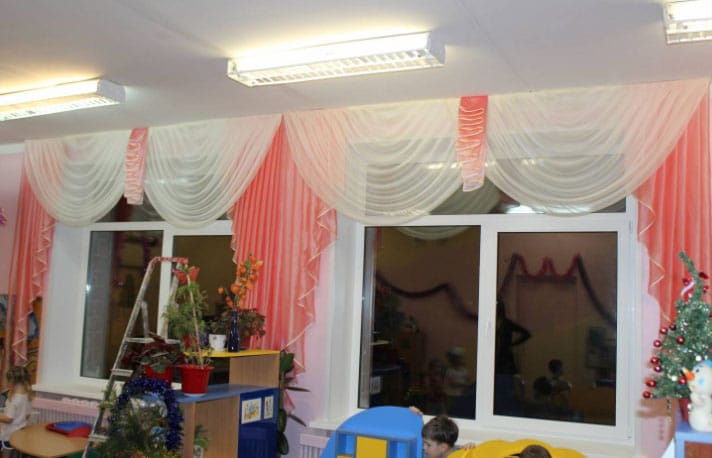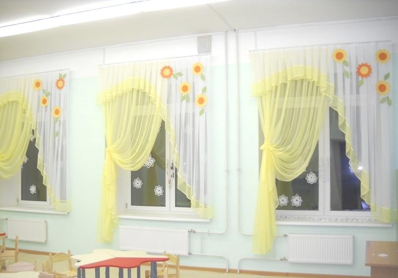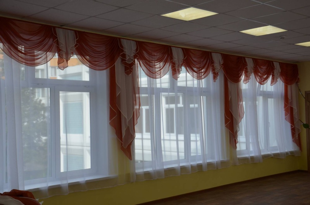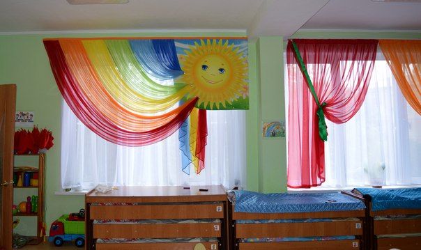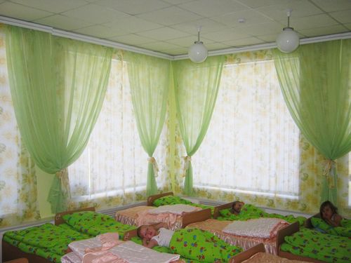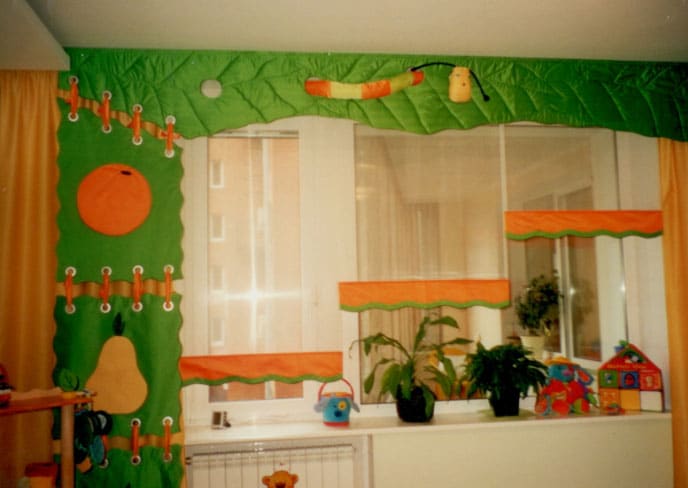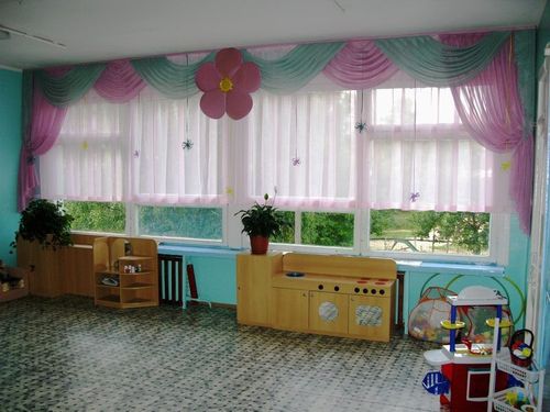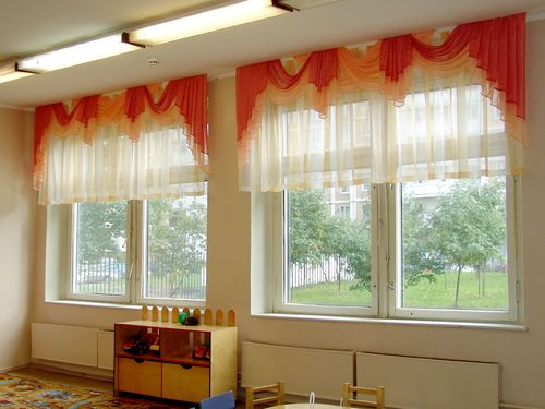 يوصي علماء النفس بإعادة تشكيل النوافذ في رياض الأطفال أربع مرات على الأقل في السنة بألوان موسمية: في الصيف - الأخضر وظلال الأحمر ، في فصل الشتاء - الذهب والحليب ، في الخريف - البرتقال والبني ، في الربيع - الجير والأصفر. ستائر رياض الأطفال مزينة بشكل إضافي لقضاء العطلات. يؤدي تحديث النوافذ في إصدارات مختلفة إلى تنمية شعور الأطفال بالأشياء الجميلة عند الأطفال. المهم ليس فقط التصميم العام للستائر ، ولكن أيضًا الامتثال لنوع الغرفة التي تهدف إليها والامتثال لجميع معايير السلامة.