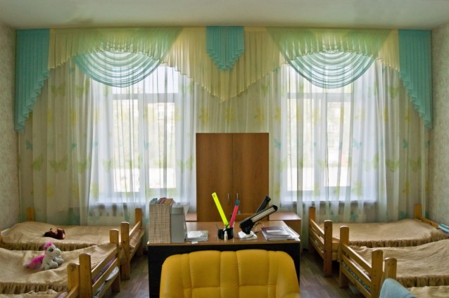 في غرف النوم الخاصة بالأطفال ، يعلقون الأقمشة والستائر أحادية اللون دون أنماط ، حتى لا يصرف انتباه الأطفال عن النوم.
