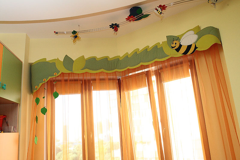 شراء الستائر في رياض الأطفال ، يجب أن تعتني براعتهم والتطبيق العملي.