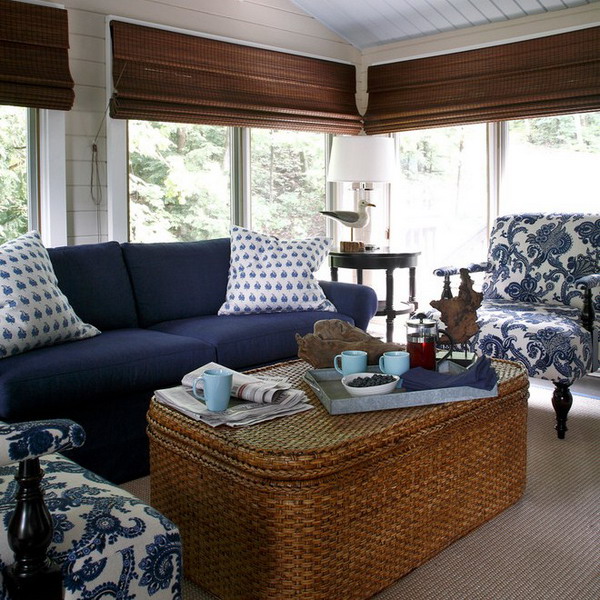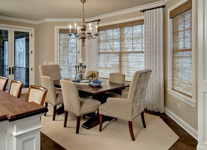 الستائر المصنوعة من الخيزران تسير على ما يرام مع الستائر النسيجية ، والأثاث الخشبي أو ظلال الخوص.