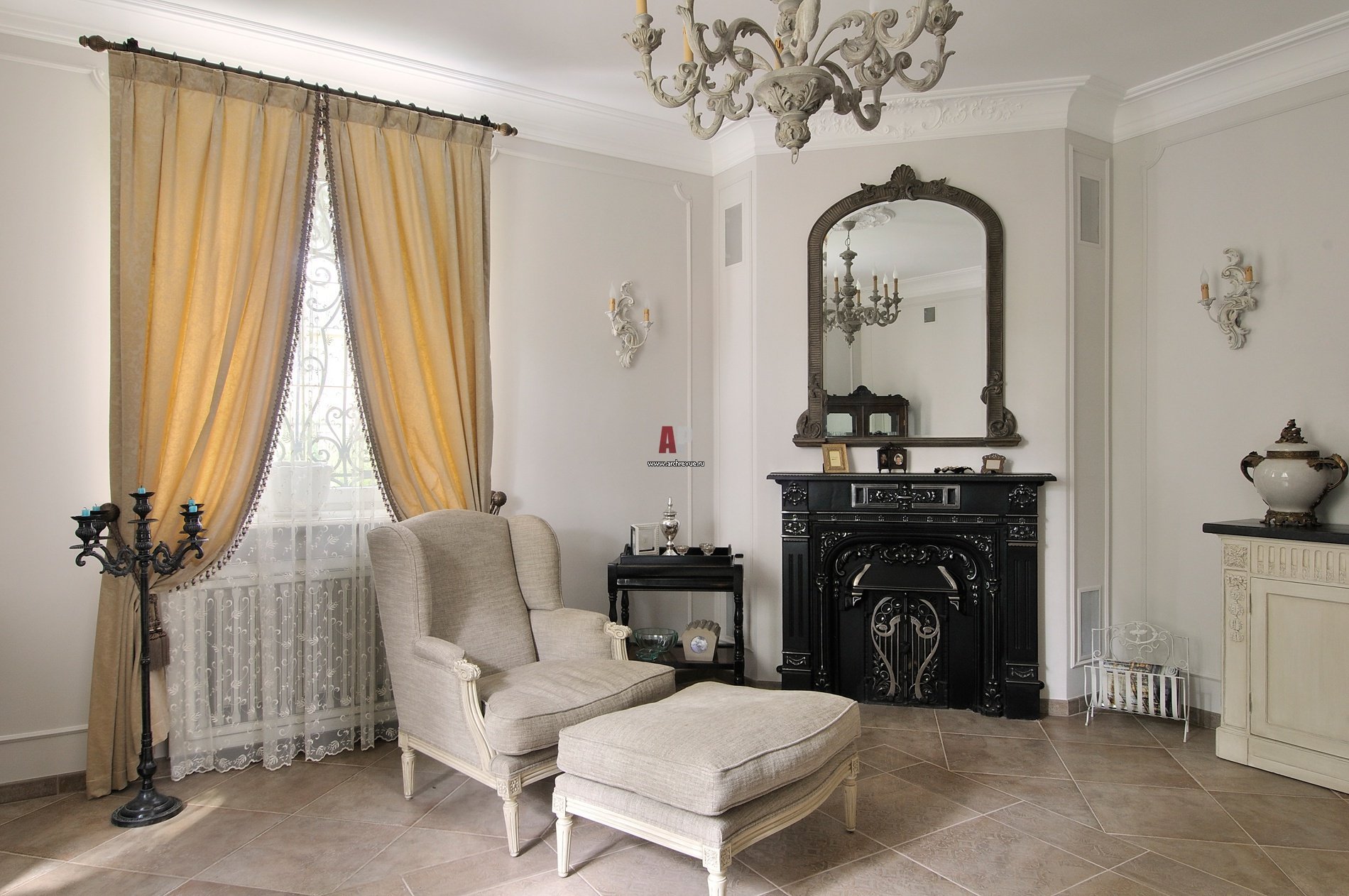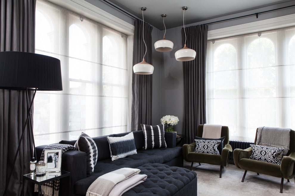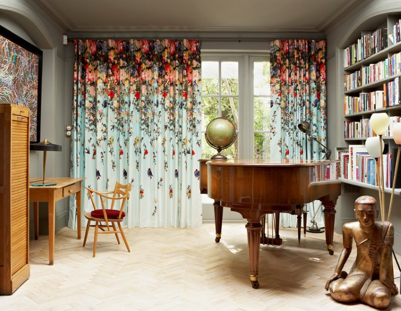 من المستحيل تزيين النوافذ في غرفة ذات طراز كلاسيكي دون كورنيش.