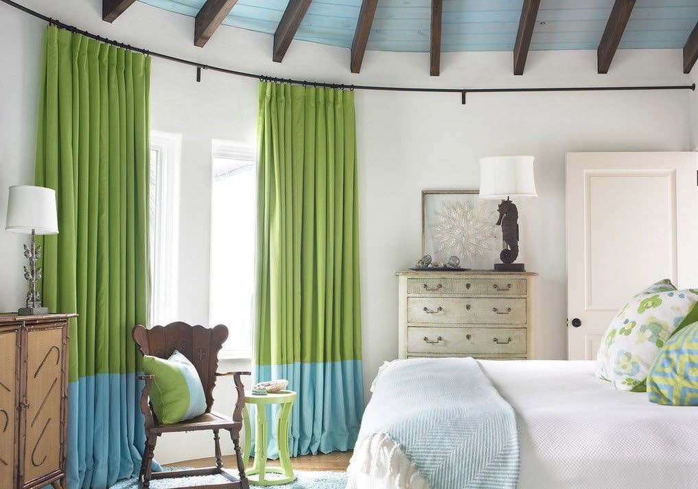 - حجم الغرفة ، وفتح النافذة. توسيع بصريا يمكن أن تكون الغرفة المشابك الطويلة - من الجدار إلى الجدار. يتم ضبط الأسقف المنخفضة عن طريق تثبيت الطنف في أقصى ارتفاع.