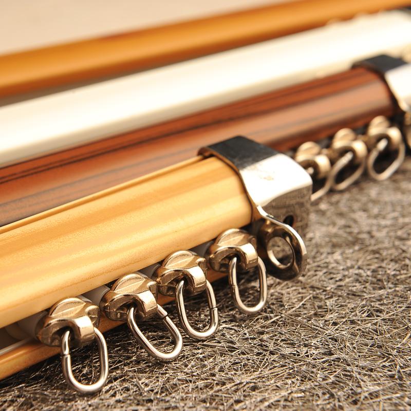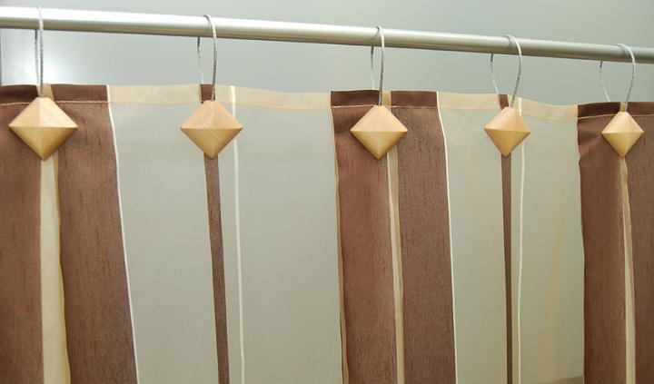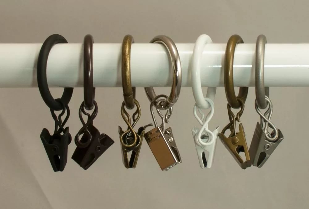 بالنسبة للأقمشة الثقيلة ، يوصى باستخدام حلقات سميكة كبيرة مع خطافات معدنية.