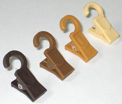 خطافات الستائر - الطريقة الأكثر شعبية لتثبيت الستار تحت السقف. هذه المنتجات مرتبطة بالعجلة أو تعمل كعنصر مستقل.